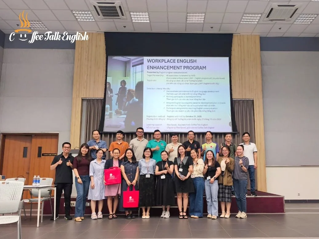 Tại Coffee Talk English (CTE), chúng tôi hiểu rằng Tiếng Anh là chìa khóa quan trọng giúp doanh nghiệp hội nhập và phát triển trong môi trường kinh doanh toàn cầu. Với mong muốn đồng hành cùng các doanh nghiệp, CTE mang đến Chương trình Đào tạo Tiếng Anh Doanh Nghiệp được thiết kế riêng biệt, phù hợp với đặc thù ngành nghề và nhu cầu cụ thể của từng doanh nghiệp.